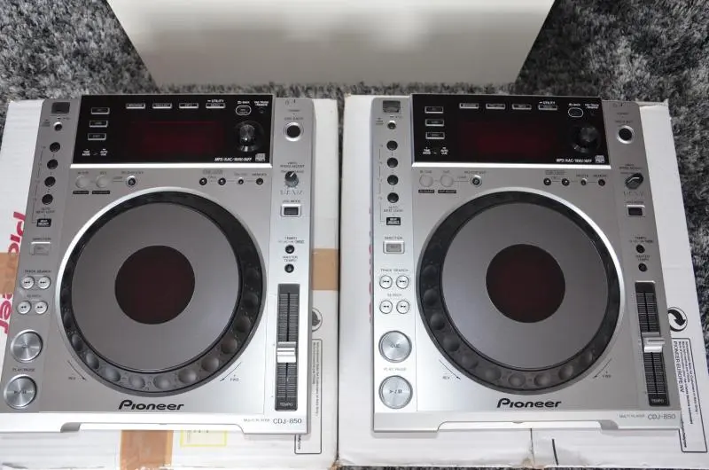 ich biete hier 2 Stück technisch wie optisch neuwertige Pioneer CDJ 850 in Silber an. Die Geräte sind ca. 1,5 Jahre alt und hatten nie einen Clubeinsatz. Nichtraucherhaushalt. Sie wurden von mir immer sorgfältig behandelt und gepflegt und waren im Ruhezustand immer mit einer Zomo-Schutzhülle geschützt. Der linke Player hat jedoch einen kleinen Lackschaden über den Search Buttons (siehe Foto), was natürlich nicht die Funktion beeinträchtigt. Bei normalen Licht ist dieser kaum zu erkennen. Originalverpackung, Anleitungen, Kabel, Recordbox-Software und die ZOMO-Schutzhüllen sind natürlich mit dabei.
