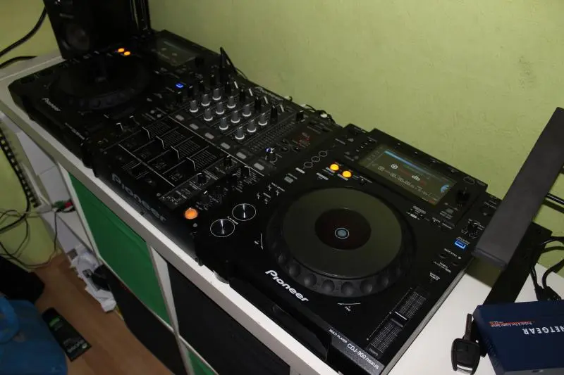 - 1x Pioneer DJM 700 ist etwa 4 Jahre alt und leistete bis dato treue Dienste.
