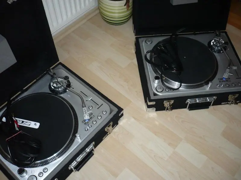 Plattenspieler befinden sich in Transportcases und haben Stanton Tonabnehmersysteme.