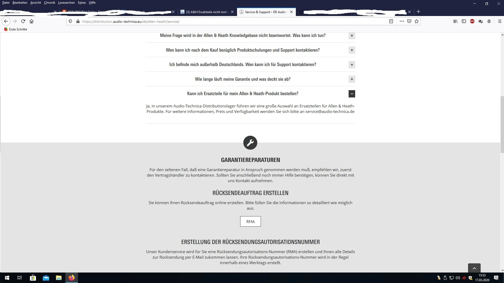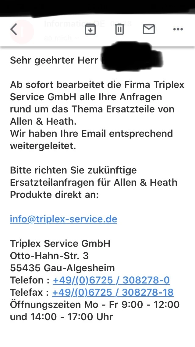 Als ich bei Audio-Technica Ersatzteile (Poti-Caps) für meinen Xone 92 angefragt habe, habe ich die angehängte E-Mail bekommen.
