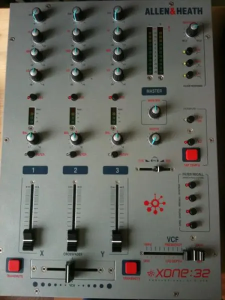 Der Allen & Heath Xone:32 wurde entwickelt, um dem professionellen Club DJ auf einem hohen Qualitätsniveau neue Möglichkeiten zu eröffnen. Dabei wurde das DJ-Know-How der Entwickler mit herausragender Studio-Technologie kombiniert. Der exzellente VCA-Crossfader des Allen & Heath Xone:32 kann umgekehrt (Reverse), abgeschaltet und sogar in der Curve justiert werden. Ebenfalls komplett ausgerüstet ist die Kanalsektion des Allen & Heath Xone:32. Eine eigene LED-Kette gewährt größtmöglichen Überblick, mit der Filtersektion wird aus regulärem Mixing individuelles Re-Mixing: Der Allen & Heath Xone:32 besitzt einen VCF-Filter in Studioqualität, der wahlweise auf Höhen, Mitten und Bässe ausgelegt werden kann. Der Low Frequency Oszillator des Allen & Heath Xone:32, der per Tap-Taster auf die gewünschte Geschwindigkeit gebracht werden kann, ist zuschaltbar. Die Filter werden dann einzeln den Kanälen zugewiesen und mit einem extra Crossfader dynamisch moduliert. Bewährte Effekteinstellungen nehmen vier DRS-Speicherbänke auf und sichern diese auch nach Abschalten des Allen & Heath Xone:32. Noch nie gehörte Soundmodulationen sind das beeindruckende Ergebnis der Effekthascherei. Ein Traumgerät für qualitätsbewusste DJs, die mehr als ein spitzenmäßig verarbeitetes 3-Kanal Mischpult suchen - die Investition in den Allen & Heath Xone:32 ist mit Sicherheit gerechtfertigt.