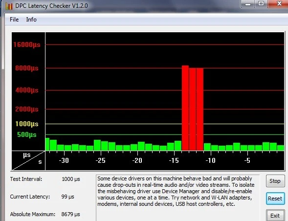 der Latency Checker zeigt folgendes an