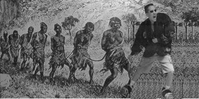 Das normale Bild sieht halt von der Körperhaltung aus, als ob da was hinter sich hergezogen werden würde (die Hände). Dann hab ich mir halt überlegt, was da so gezogen werden könnte. Da bin ich irgendwie bei Sklaven gelandet...