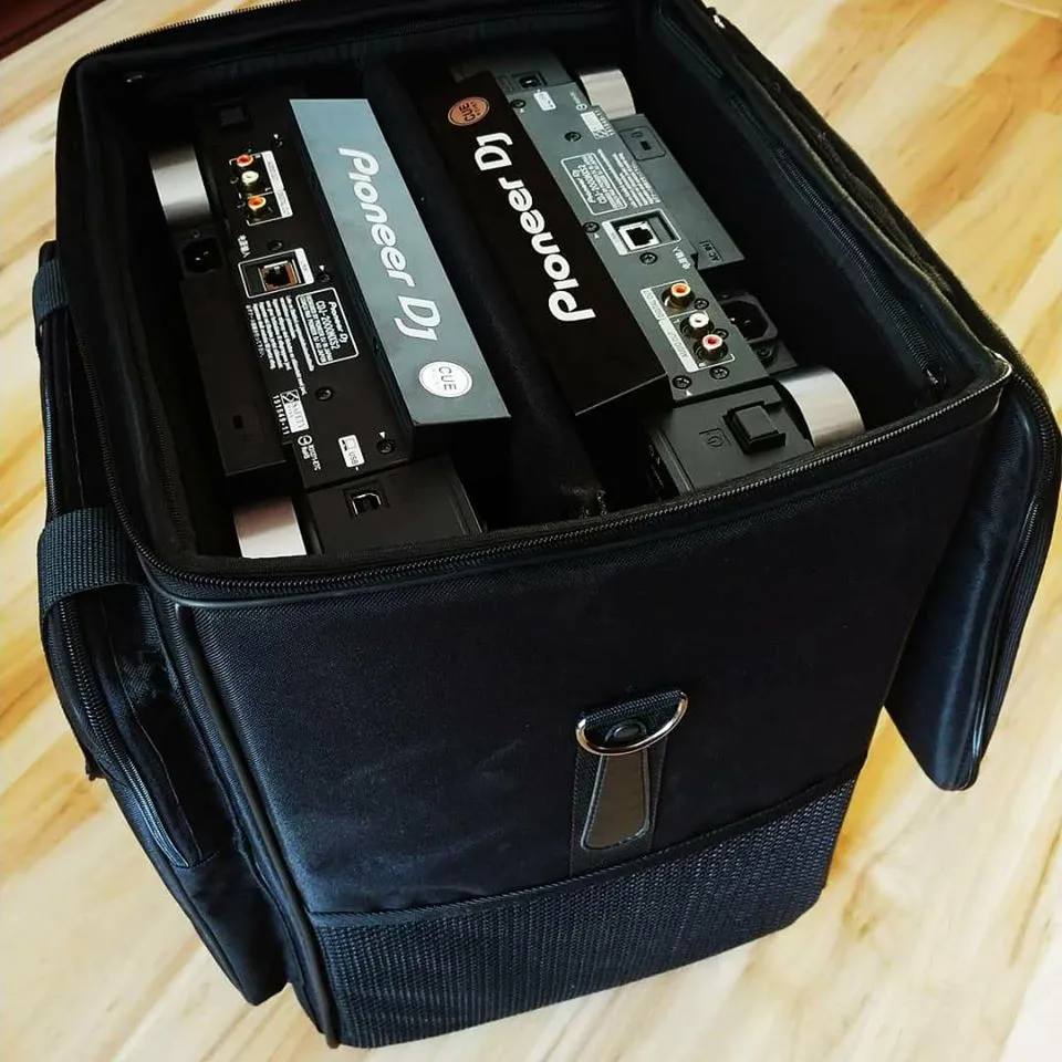 es passen zwei CDJ-2000 Nexus sowie SC-5000 Player samt Kabeln rein.