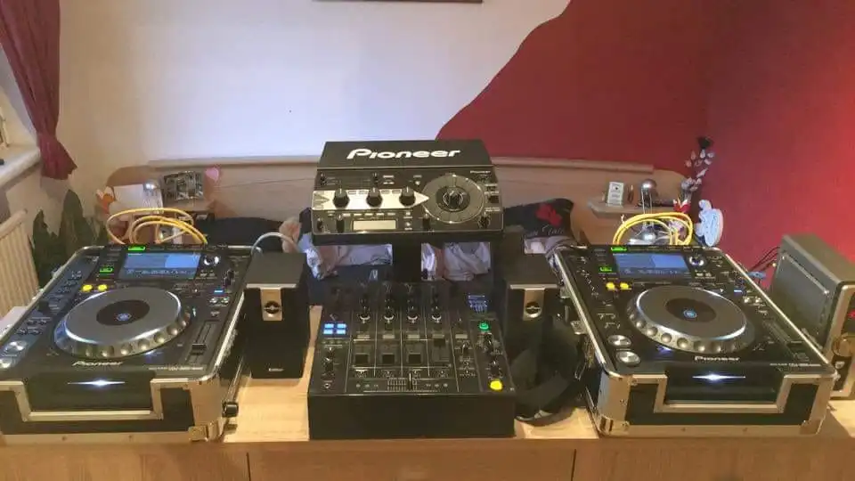 PS: Habe nur das eine Bild von paar Wochen da es zurzeit im Keller in den Cases sowie OVP verpackt ist. Beim RMX sind auch die audiokabel und der Pioneer Standfuss dabei. Sowie die SD Karten. RMX hat ne 8gb und die 2 Player jeweils 64GB