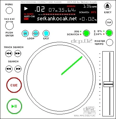 Wheel-Indicator im Scratch-Mode; 16% Pitch; Scratch-Mode = rot