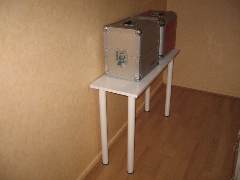 Eine massive Glasplatte mit zwei Holzböcke...FERTIG