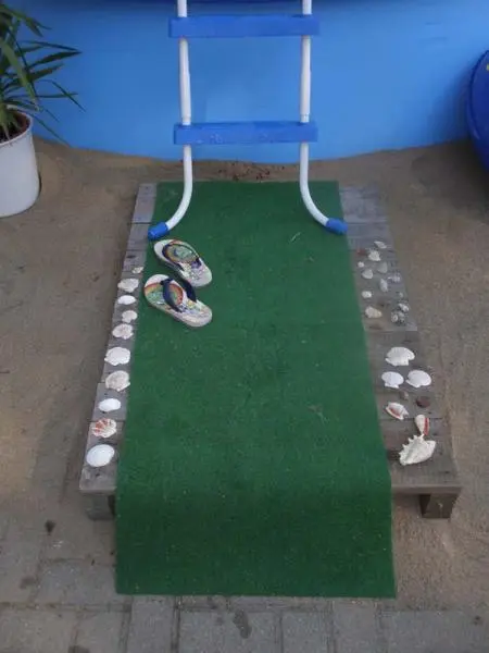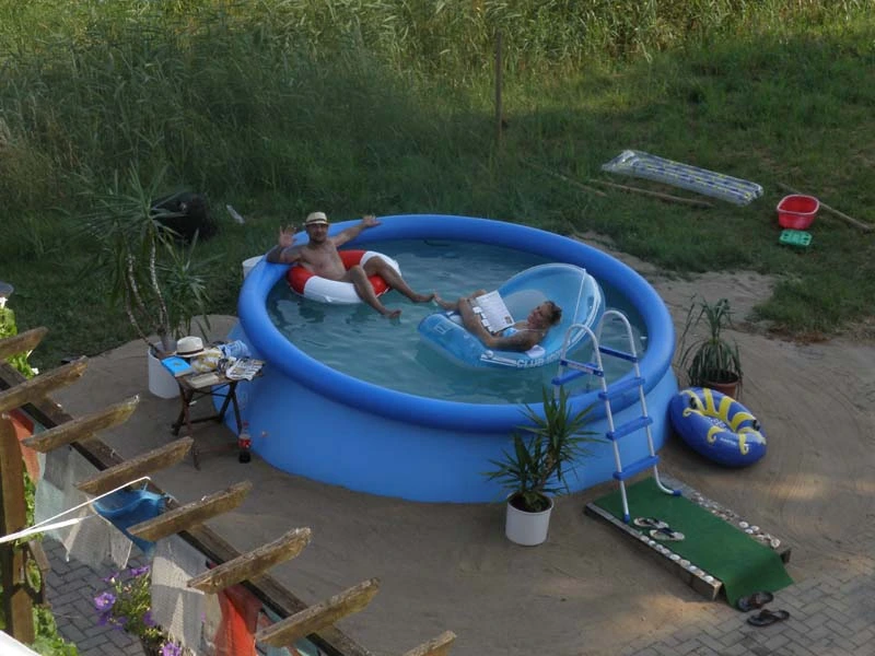 Wir haben da so'ne Matten untergelegt, damit's nicht so unbequem ist und die Folie besser hält. Als Pumpe hab ich ne Brunnenpumpe umgearbeitet. Damit kannste den auch gleich aussaugen![]()