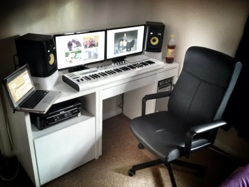 So wie es aussieht, lässt deine Setup Situation auch keine großen Monitorstative zu. Genau das ist bei mir auch der Fall und ich habe letztens eine sehr günstige und perfekte Lösung gefunden
