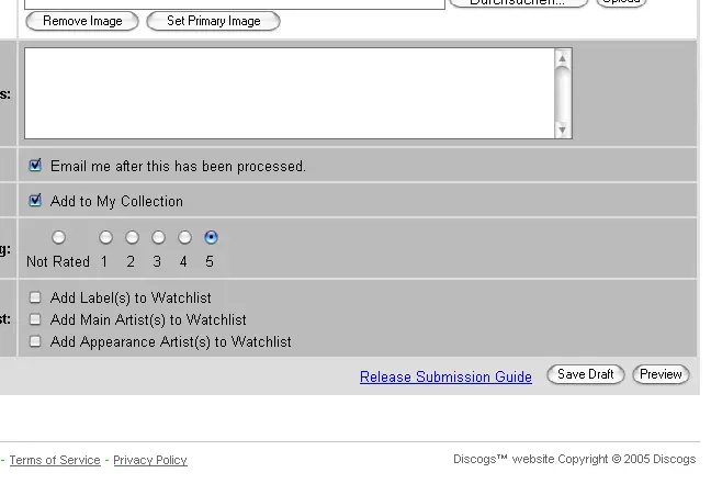 Plangin schrieb:Habe Discogs auch lange zum Recherchieren benutzt, doch jetzt hab ich ein wenig Zeit gefunden, meine Platten zu rippen und bei der Gelegenheit trag ich auch gleich alles dort ein.