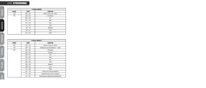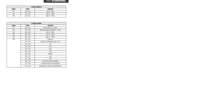 Diese Tabelle sagt dir bei welchem Wert auf welchem Gerätekanal dein Scheinwerfer was macht.