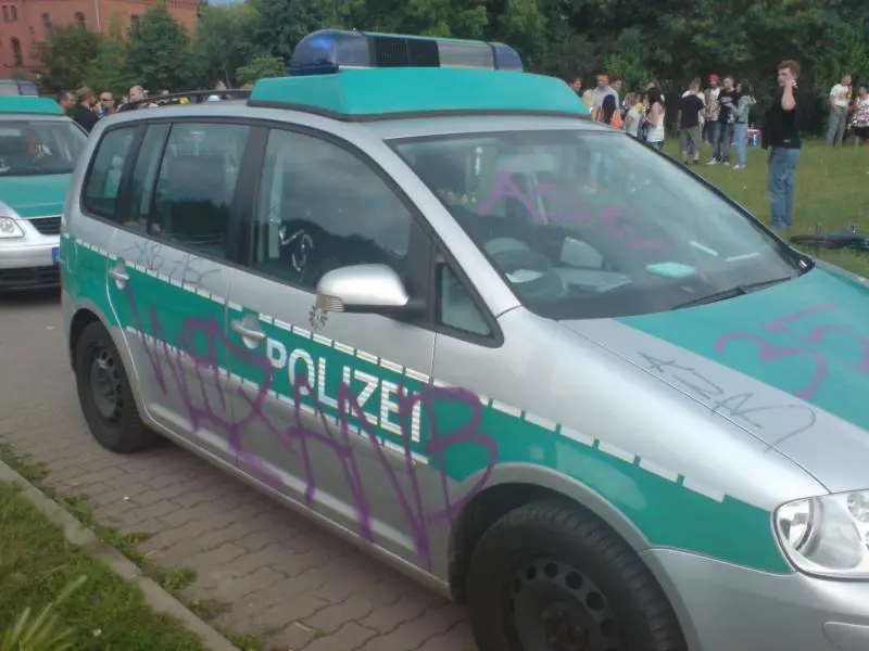vor dem großen Regen kamen die Grünen das erste Mal, um nen Typen mitzunehmen, der in eine Schlägerei verwickelt war. Die kamen mit zwei kleinen Wagen. Als die Besatzung des ersten Wagens den Typen holen ging, wurde das Auto bemalt