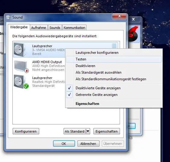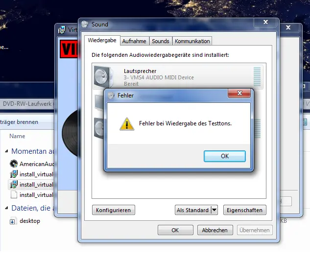 Aber wenn ich test signal in dein sound einstellungen meines pcs (Win7) wiedergeben möchte sagt es mir "fehler bei wiedergabe des testtons"