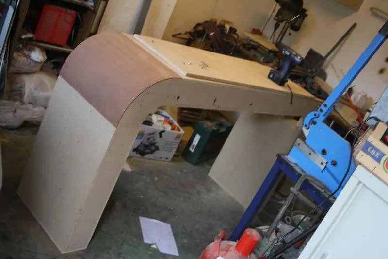 Als Kleber hab cih Ponal Express verwendet,dadurch konnte ich relativ schnell arbeiten,trotzdem hat es unglaublich lange gedauert das ganze zu machen und an Stellen wie den Rundungen bin ich wirklich verzweifelt,Sandsack ging nicht(zu groß) und sonst kannte ich nichts,bis ich dann aufs Bügeln gestoßen bin,das ging einigermaßen,aber perfekt ist das nicht,egal,es hält und ist glatt