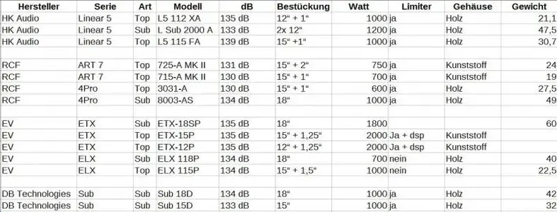 Generell würde ich auch noch in Betracht ziehen einen Behringer DCX zu kaufen um bei den günstigeren Anlagen mit dem EQ zu arbeiten und den Limiter zu nutzen. Wobei ich selbst an meinem Pult immer einen vernünftigen Pegel fahre das da nicht viel passieren kann.