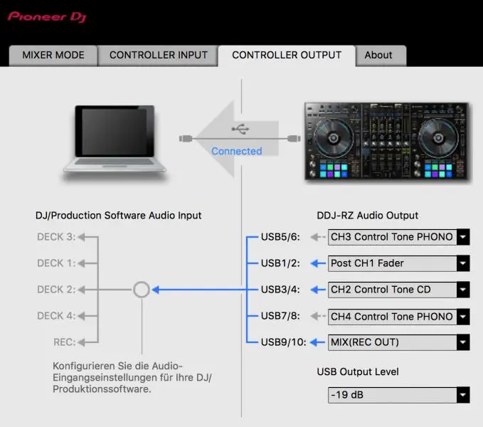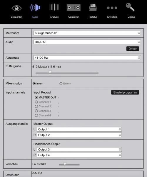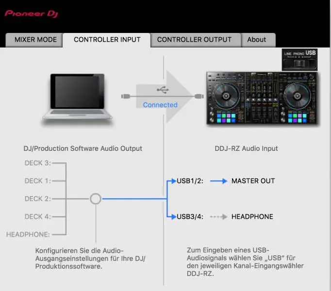 zunächst einmal: Ich bin absoluter Neuling und habe den Pioneer DDJ-RZ geschenkt bekommen den ich nun gerne ausprobieren will. Ich nutze ein MacBook (über USB A angeschlossen) und habe als Ausgabegerät den DDJ-RZ ausgewählt sowie den letzten Treiber installiert. Wenn ich z.B. über iTunes ein Lied abspiele kommt aus den 2 Boxen (über XLR angeschlossen) ganz normaler Ton – soweit so gut.