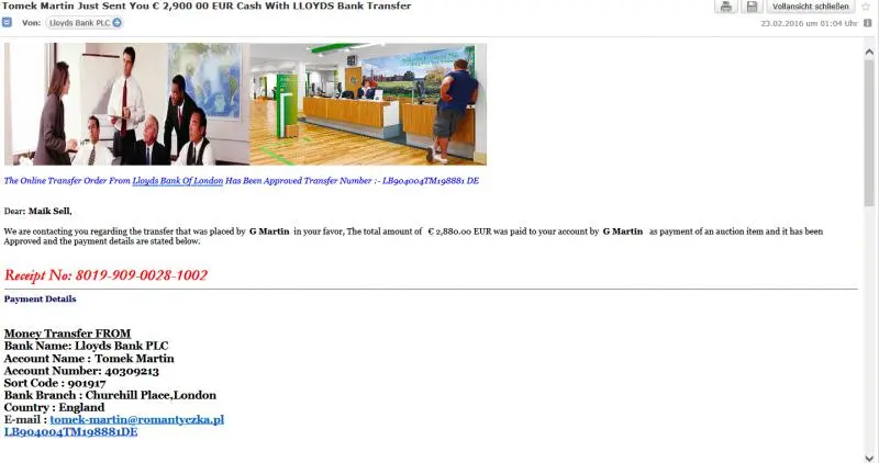 Ich möchte etwas auf eBay Kleinanzeigen verkaufen und da hat sich ein Engländer gemeldet. Es geht um einen Betrag von 3000€. Das schon mal vorweg.