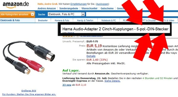 Mein 2. Heco Lautsprecher ist aus der Reparatur zurück. Da es anscheinend keine 5M DIN auf Cinch Kabel gibt, kann man ja einen solchen Adapter nutzen.