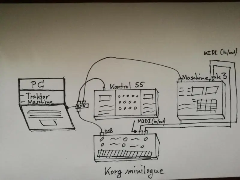 But how can I sync or which one is the best option to connect the minilogue to this setup. I want to use this on a live setup (it has also an sequencer) which I want to sync with Traktor. Maschine and the minilogue have both MIDI in/out.