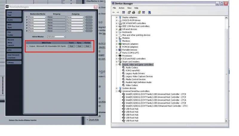 Wollte dann mal mit Ableton(DemoVersion) rumspielen, kann das Pad aber weder in der Vorauswahl anwählen noch bei den MIDIPorts sehen und einschalten.