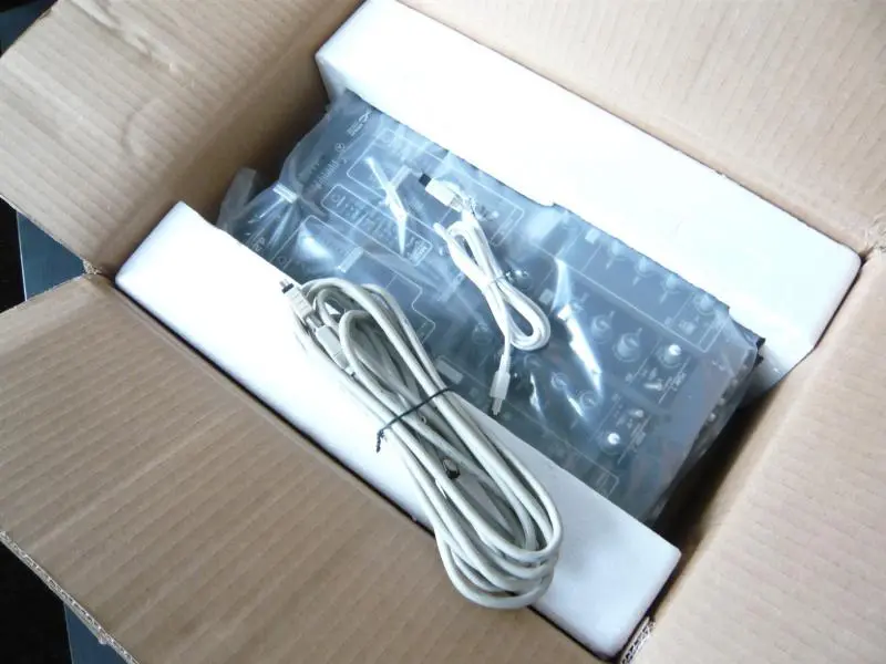 Ich verschicke den Mixer original Verpackt mit zwei FireWire Kabeln - ein 6-pol Male-Male Kabel mit Adapter auf 4-pol Mini-Firewire und ein 6-pol Male zu 9-pol Male Kabel (für Mac).