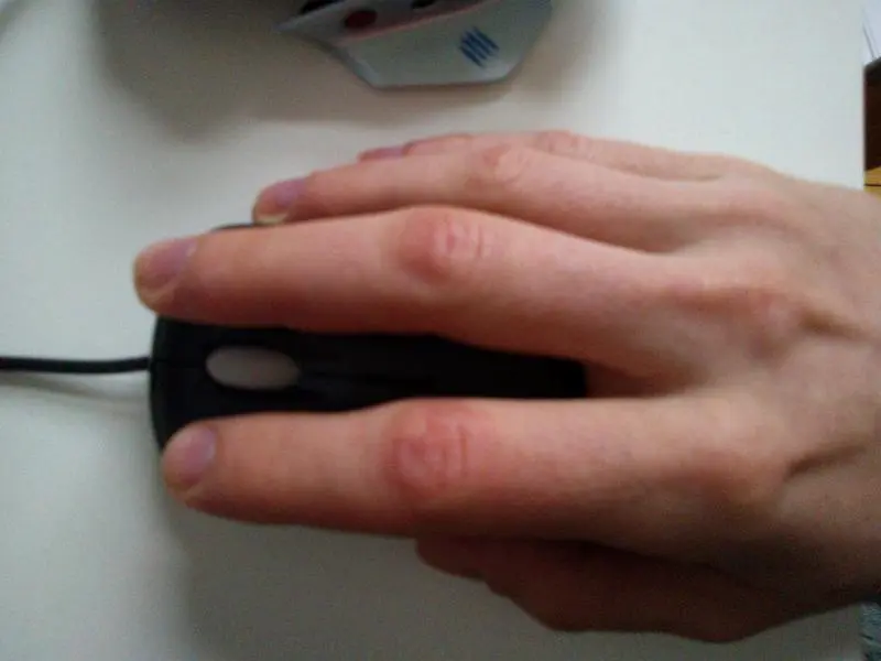 Ich selber habe mich allerdings recht schnell dazu entschlossen, die Breite der Mouse auszunutzen und 3 Finger oben aufliegen zu haben. Der Mittelfinger bedient nur noch das Scrollrad, der Ringfinger die rechte Mousetaste. Das brauchte zwei drei Tage Umgewöhnung, nun finde ich es wesentlich entspannter. Die Kleinfinger-Auflage habe ich inzwischen wieder zurückgewechselt.