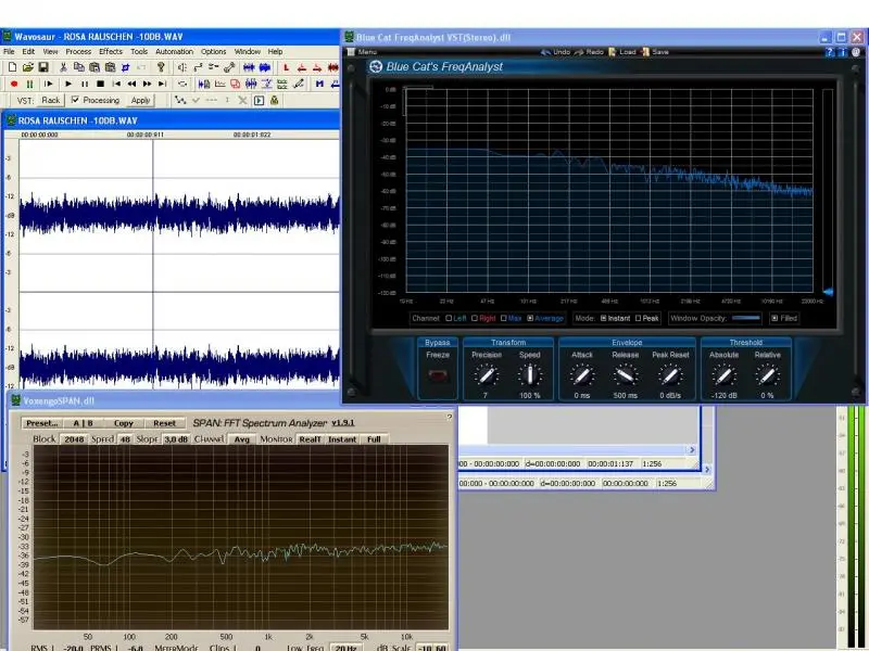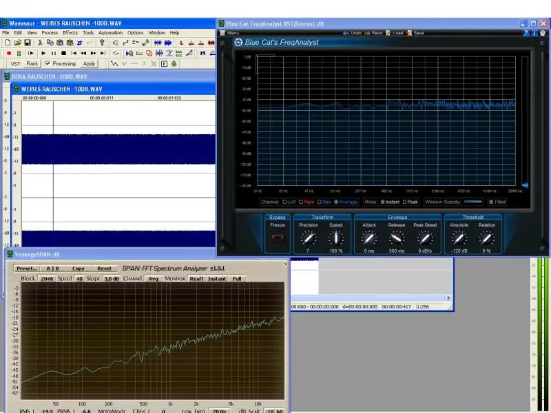 Dabei hatte ich in Wavosaur immer parallel den Voxengo SPAN und den BlueCat FreqAnalyst geöffnet, um die beiden Tool ein bisschen zu vergleichen.