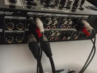 Es handelt sich um zwei Pioneer S-DJ60X Boxen und die Kabel sind Cordial Mikrokabel XLR Neutrik. Die Kabel habe ich direkt an das Mischpult angeschlossen, allerdings nicht miteinander und ich benutze auch keinen Verstärker.