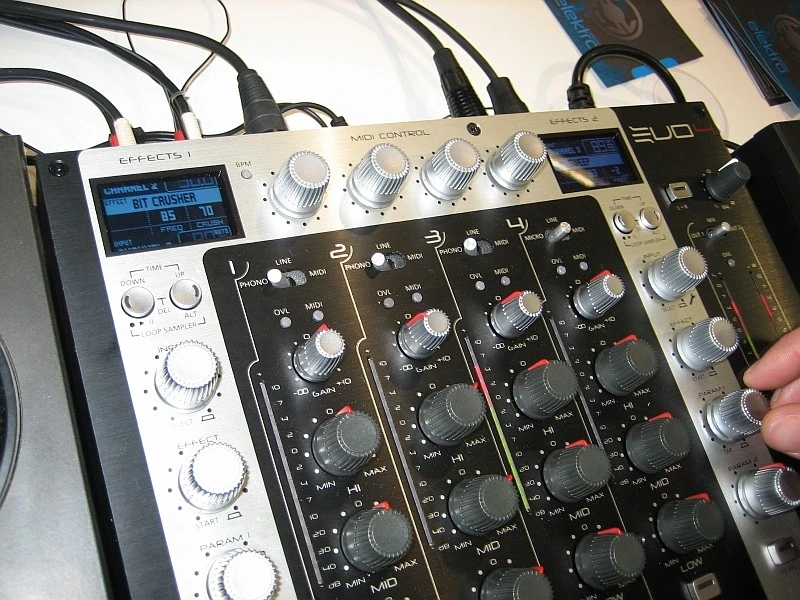 Sämtliche Fader und Poties aller Kanäle lassen sich mit MIDI-Befehlen belegen, oder aber als Line/CD/Phono-Eingang nutzen. Die MIDI-Funktion wird erweitert durch den frei belegbaren Crossfader und den 4 Rotary-Encodern.