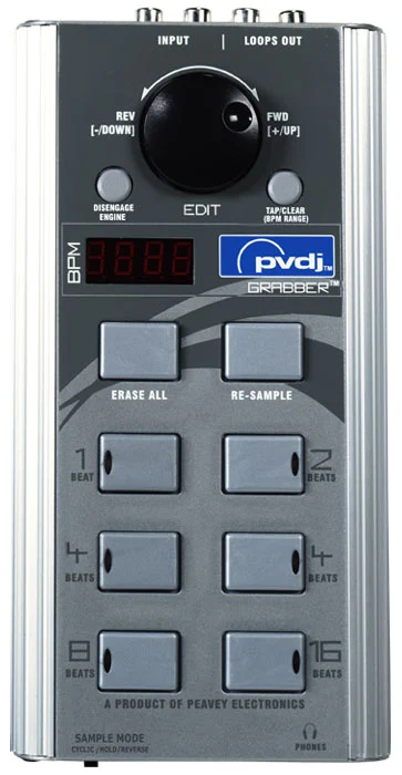 Formerly known as the "Cycloops", the new Grabber from Peavey improves on the old technology and revolutionizes sampling forever! Unlike other samplers that require you to record the loop and then edit the start and end points, the Grabber automatically creates a perfect loop using a built-in beat per minute counter, then instantly syncs the loop to your mix tempo - making this by far the best "on-the-fly" sampler for Top DJ's around the world.