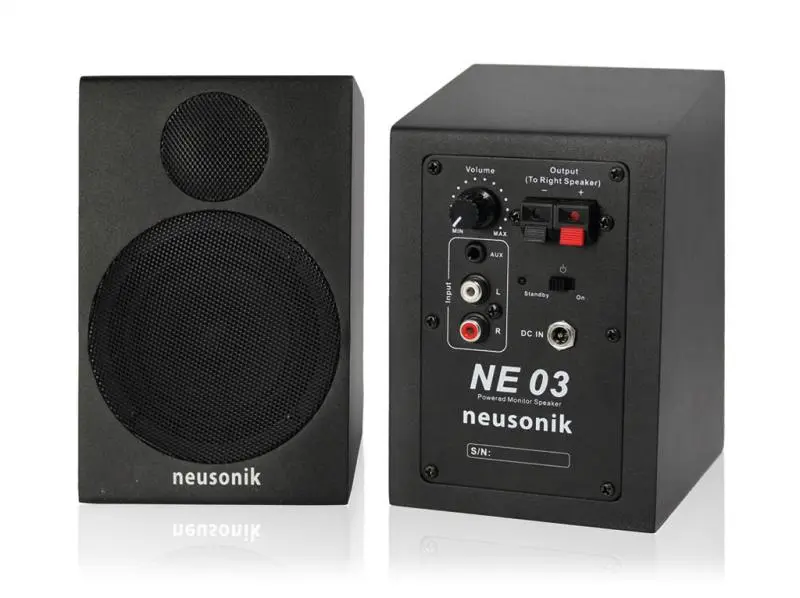 NE03 are affordable stereo monitors for home recording, computer use and mixing. The stereo pair feature 3" drivers with a front-mounted bass port and built-in 24W stereo power amplifier. In addition to being an affordable solution for beginners and musicians on a budget, the NE03 monitors provide a "real-world" reference for music and post playback.