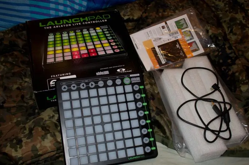 Lieferumfang: Launchpad, USB kabel und eine unbenutzte Ableton Launchpad verion.