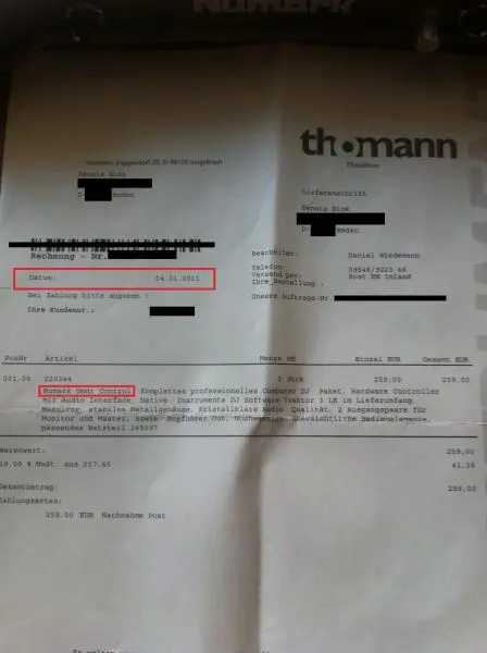 Gekauft wurde er am 4.1.2011 bei Thomann.