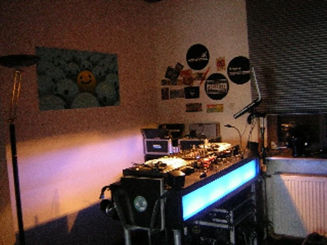 Na schau einer an. Ich erkenne starke Ähnlichkeiten mit meinem Proberaum...Schon komisch, wenn man plötzlich seine eigenen Ideen bei jemandem anderes sieht... Das Einlassen von TTs und dem Mixer hatte ich auch vor, allerdings war mir das zu unpraktisch, wenns on Tour gehen soll. Außerdem ist es bei mir eher ein Provisorium auf unbestimmte Zeit. Ich stell die Woche auch mal paar Bilder rein... (Zwecks den Labels an der Wand hab ich auch noch 'ne feine Gestaltung gefunden