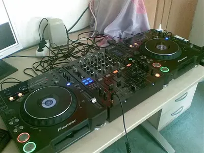 hier mein standard set auf einem expedit, das restliche equipment habe ich noch nicht aufgebaut (cd player, laptop, keyboard usw..)