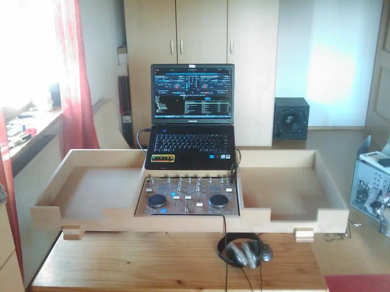 Links und Rechts stehen eigentlich 1000er MK3 drinne und in der Mitte mein Mixer. Der Midi und der Laptop stehen auch nur da, damits nicht so leer aussieht:d