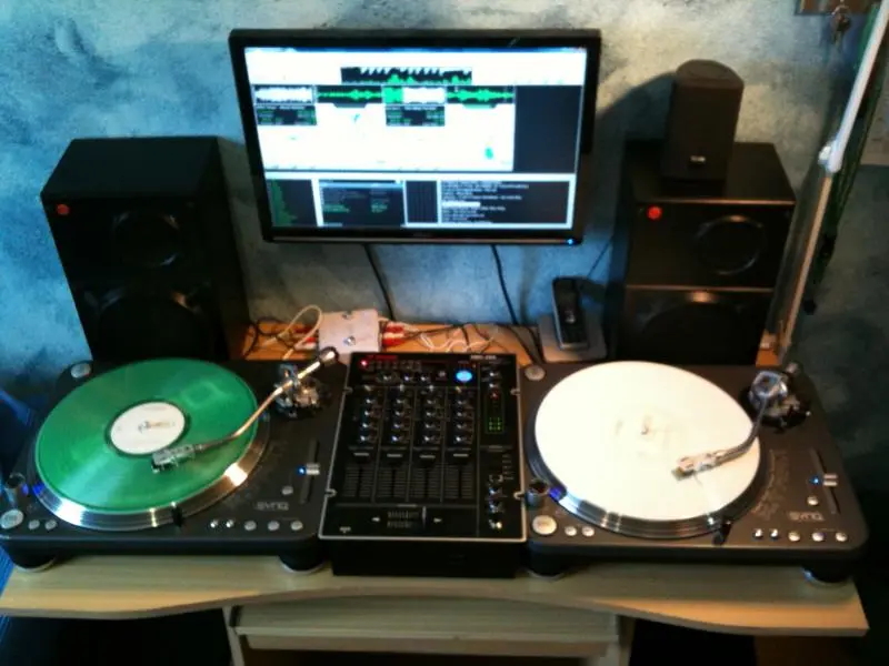 auf Dauer wird der cd player im weg sein, wenn du mit Vinyl auflegst... Versteh auch nich warum der auf so nem Ständer steht, macht doch keinen Sinn, Platz wäre ja da um ihn aufs Pult zu stellen