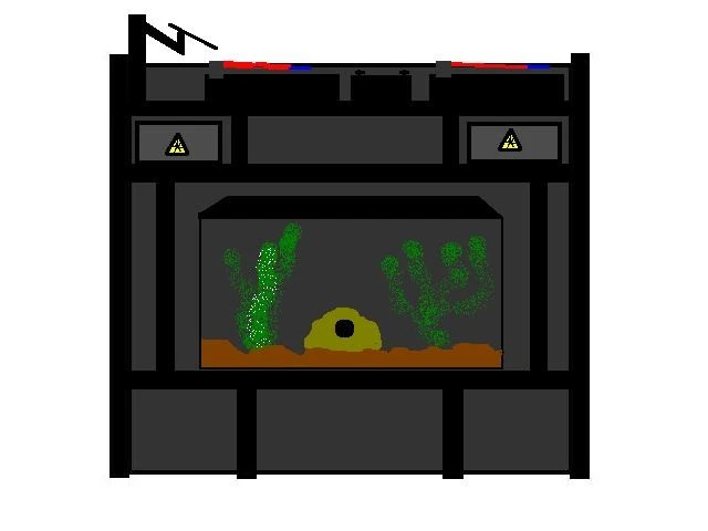 Es ist ein Spinnenterrarium integriert sowie 2 kleine grüne Laser von Thomann!