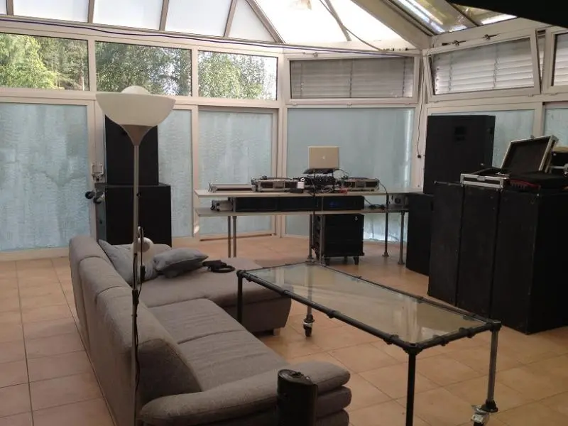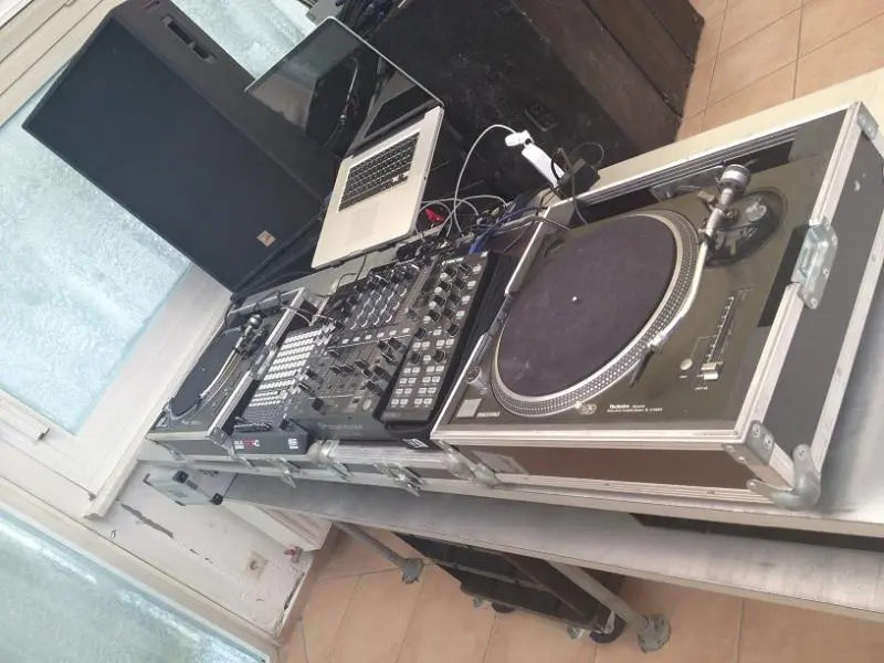 in der mitte wandhalterung, schwenkbar mit 23 zoll touch moni, xone 62, cdj 850, numark ttx.