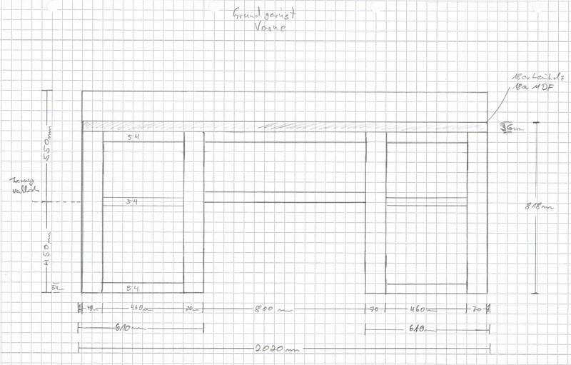 Das Problem habe ich gerade. Ich habe mir schon eine grobe Zeichnung von meinem DJ Pult gemacht (soll auch gleichzeitig mein PC Arbeitsplatz sein).