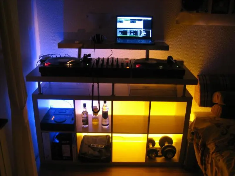 UND ... nein, das Notebook ist nicht zuweit weg vom Mixer, passt eigentlich alles echt wirklich gut, es hängt genau über den CDJs und ist so garnicht im Weg. Sieht auf dem Foto vielleicht weiter weg aus als es ist.