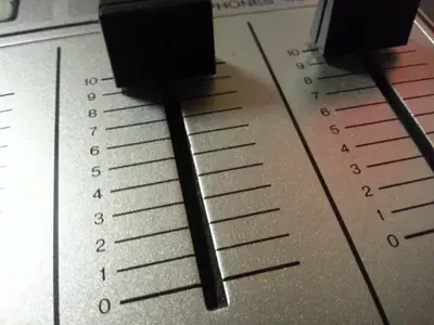 Er befindet sich in einem sehr guten Zustand, alles funktioniert einwandfrei. Im Prinzip habe ich nur mit den Fadern der Kanäle 3 und 4 gemixt, alle anderen Fader wurden kaum benutzt. Er hat nur einen kleinen, fast unsichtbaren Kratzer zwischen diesen 2 Fadern auf der Frontplatte (siehe Bild). Dies beeinträchtigt natürlich in keinster Weise die Funktion.