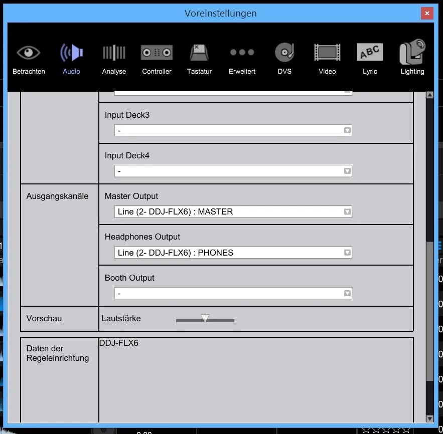 Wenn ich an den Controller direkt dran gehe, also mit den Boxen über Chinch und Kopfhörer über den normalen Ausgang, kann ich vorhören während Musik läuft.