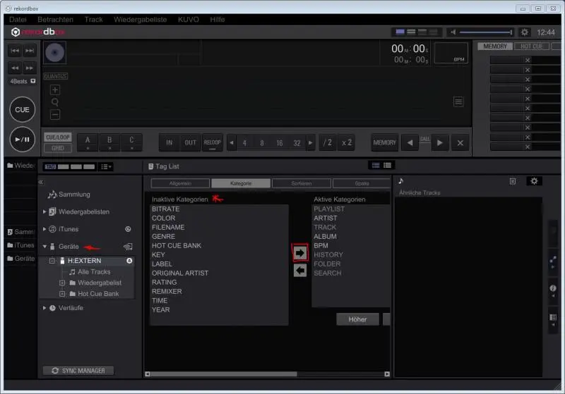 Z.B. von USB Stick einen Track in Ch 1 laden