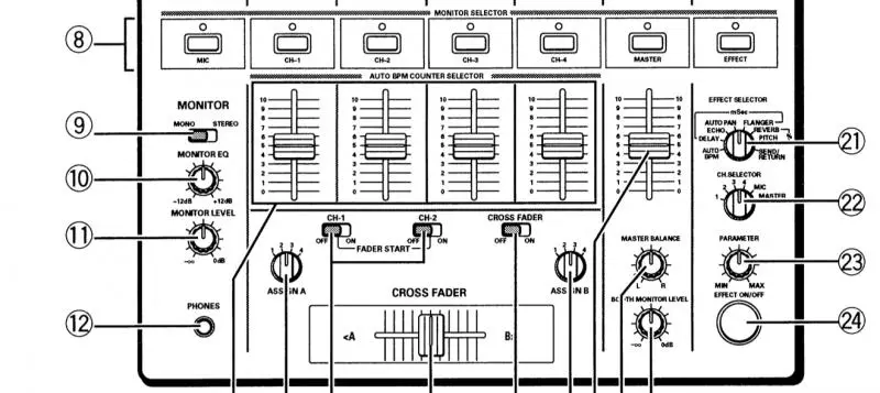 Ich habe mir vor kurzem das DJM-500 gebraucht gekauft. Jetzt stellte ich feßt das warscheinlich das Efektteil defekt ist. Wenn ich über CH1 Musik laufen lassen und auch den CH. Selector auf CH1 setze und den Effekt einstelle, passiert nichts. Bei druck auf dei Effekt Taste passiert auch nichts. Die Effekttaste leuchtet immer. Am Parameter kann ich auch drehen wie ich well es passiert einfach nichts. Hatte einer von euch das Problem auch schon mal, oder weiß einer wo dran das liegen könnte???