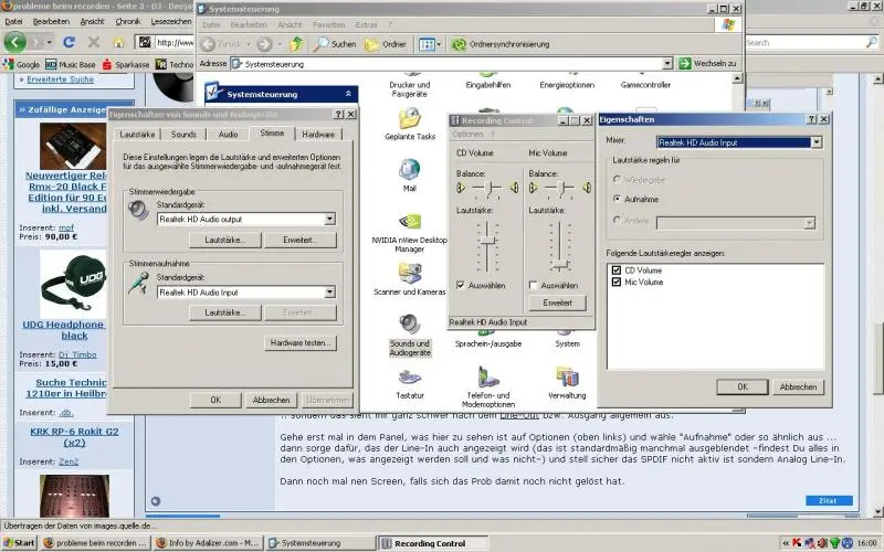 ich schließe das "chinch-klinke" kabel am mixer und am lappi an (line in). der rechner sagt mir auch das line in funktionsfähig ist. aber es kommt kein signal beim aufnehmen an. im control panal der soundeinstellung wird mir aber auch kein line in angezeigt. ich bin mitlerweile schon am verzweifeln, daher hoffe ich hier auf hilfe. achso ich habe windows xp.