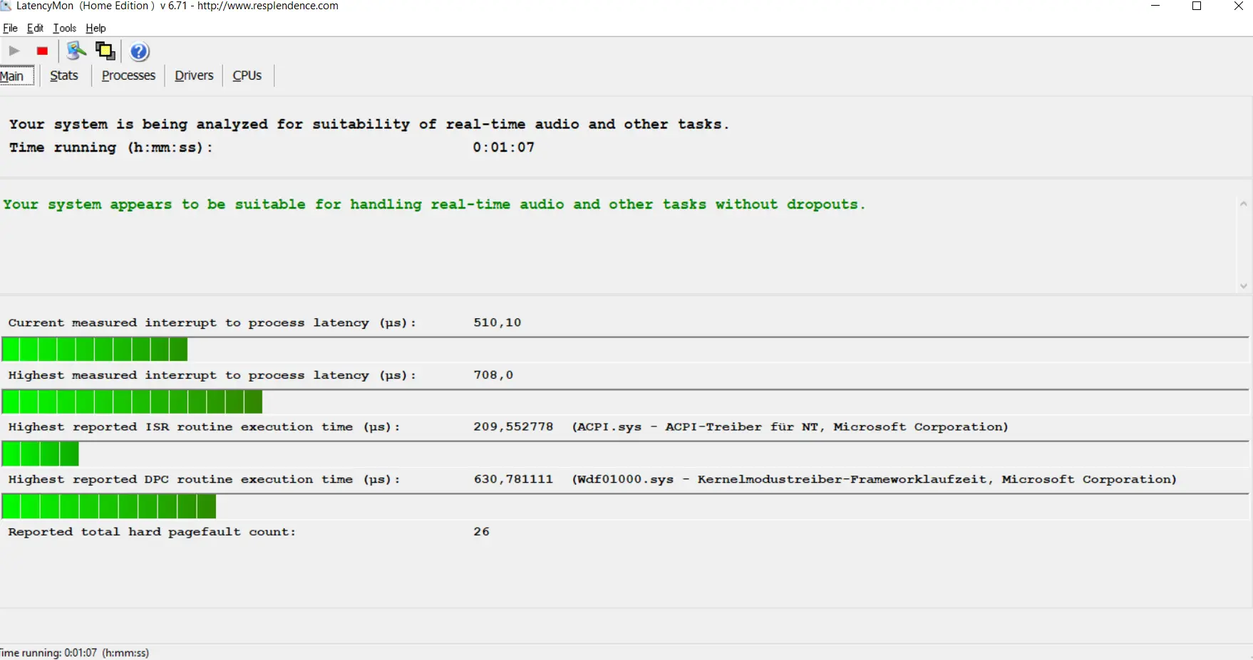 - optimale Prozessorleistung von „Programme“ (Rekordbox) auf „Hintergrunddienste“ (ASIO Treiber) testen und mit LatencyMon vergleichen: