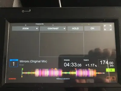 Ich warte bspw. sehnsüchtig auf die gestochen scharfe Darstellung der laufenden Tracks mit allen Zusatzinformationen, ähnlich den DDJs, im mittleren Display. Für die Nichtbesitzer: Da ist bislang nur eine vollkommen unscharfe Darstellung der Waveform vorhanden, vergleichbar der Videodarstellung auf einem kleinen Billigstfernseher.