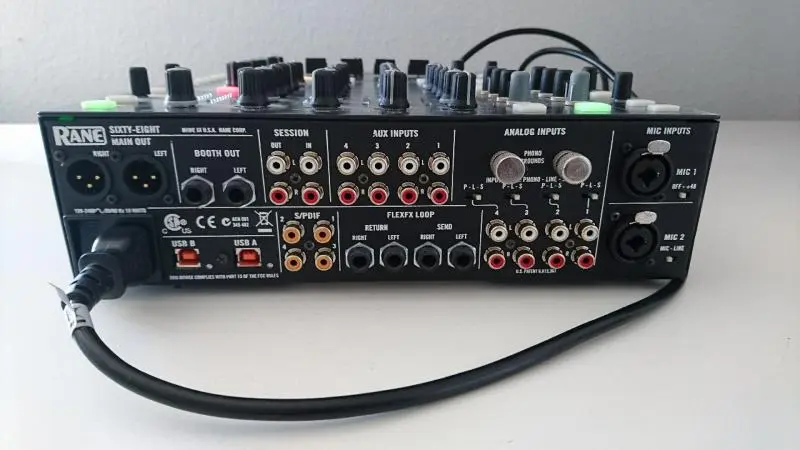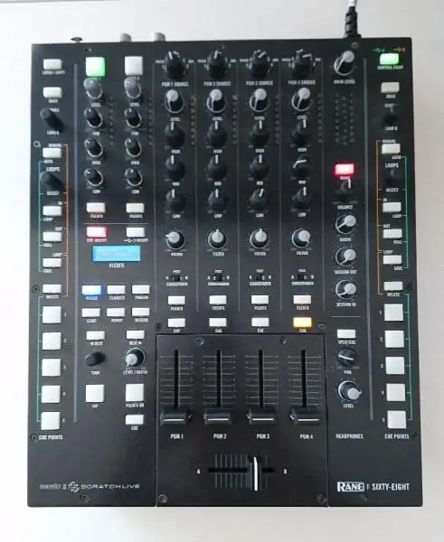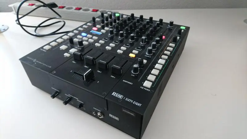 Technisch einwandfrei. Besonderheit sind die zwei USB Anschlüsse und die Digital-Eingänge. Die fehlende Potikappe ist schon gefunden und angebracht. Rane wurde ja an inMusic verkauft, der 68er ist noch "made in the U.S.A." in gewohnter Rane Qualität.