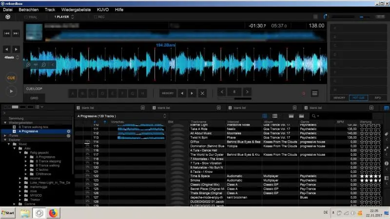 Zeitangaben und bpm sind normal dargestellt, ebenso die große wavedarstellung.